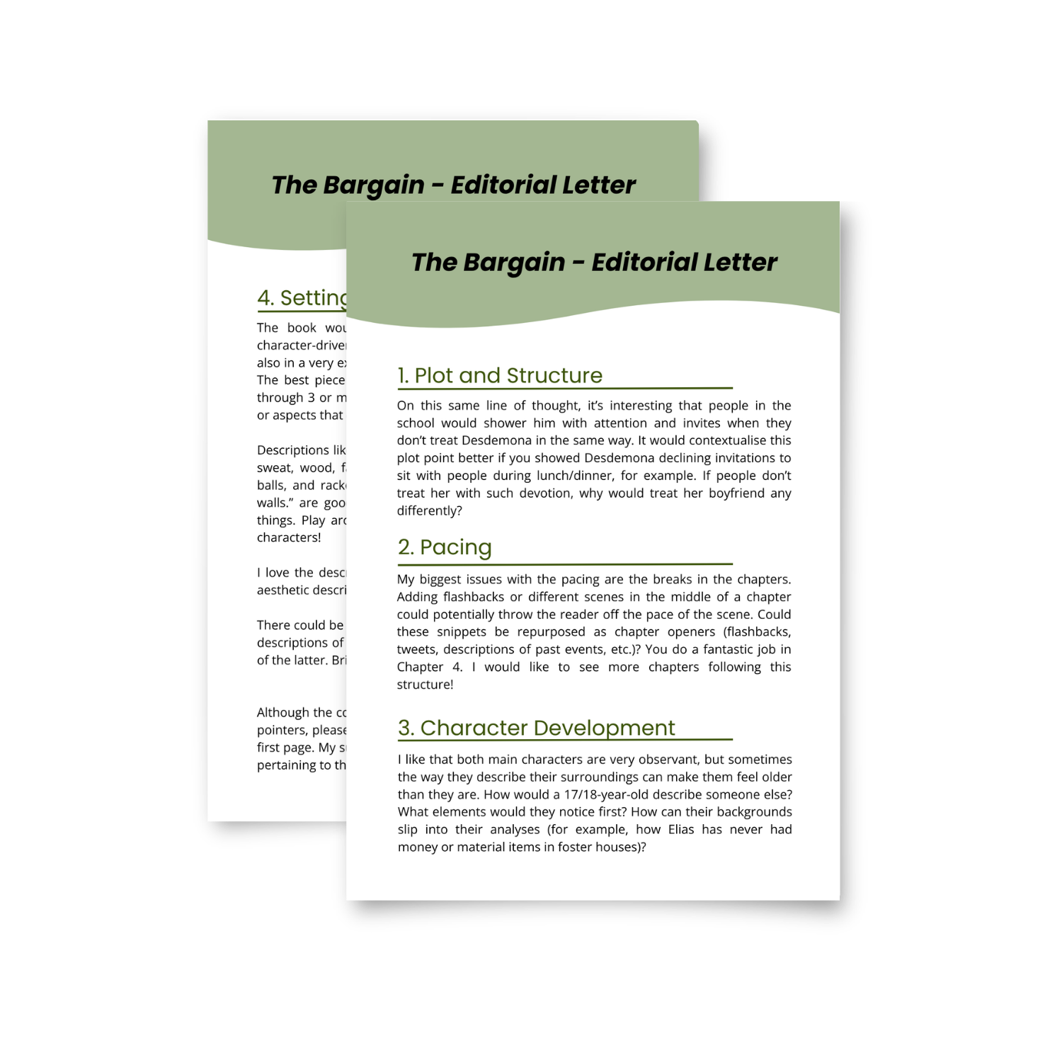 Feedback on plot, pacing, world-building, and character development